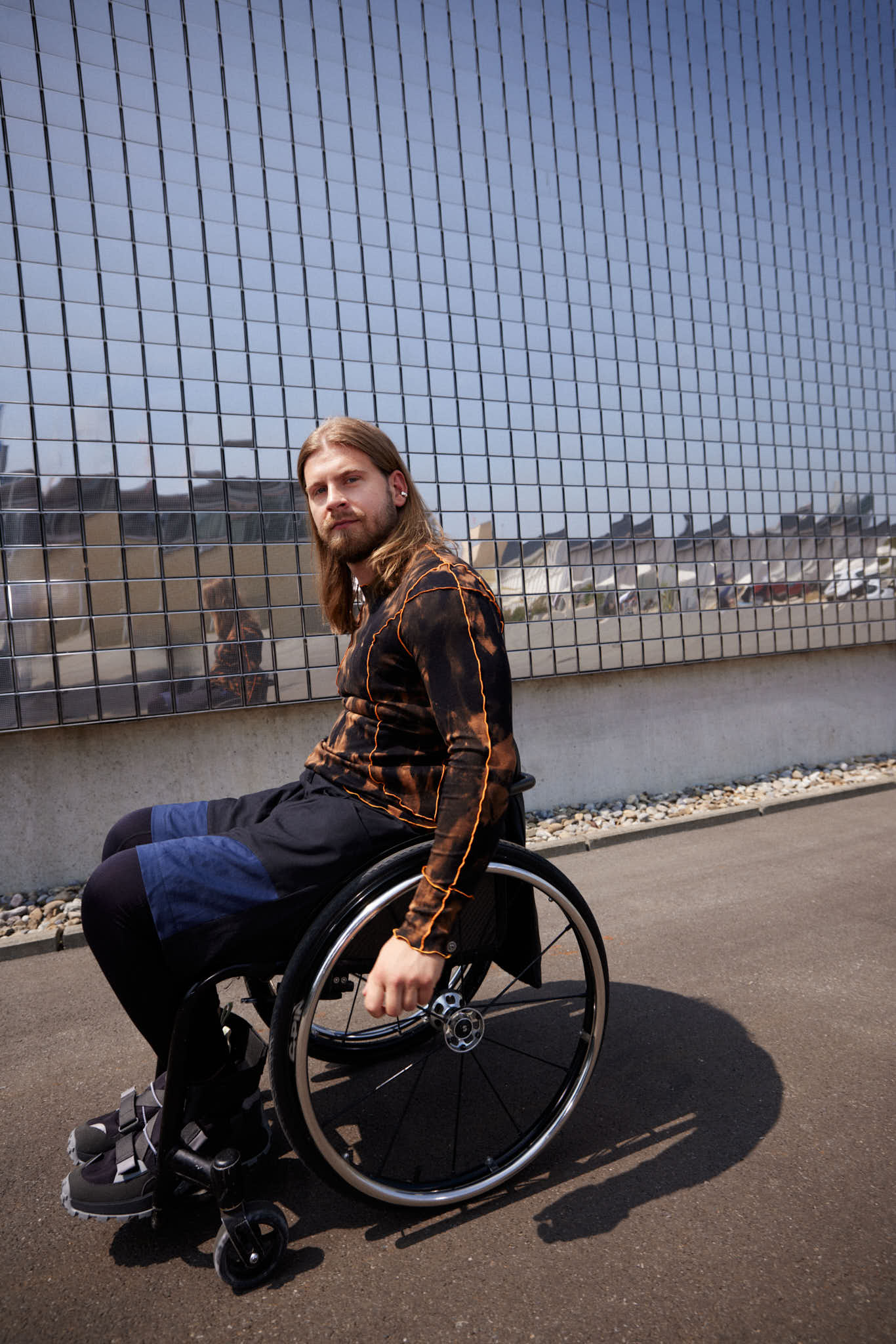ADAPT is a joint venture between Lilla Wicki, the Swiss Paraplegic Foundation (SPF), Yannick Aellen (founder and director of Mode Suisse) and the Schweizerische Textilfachschule STF. It is a unique project, in which designers, students and people with spinal cord injuries work together to create stylish and functional clothing for wheelchair users.