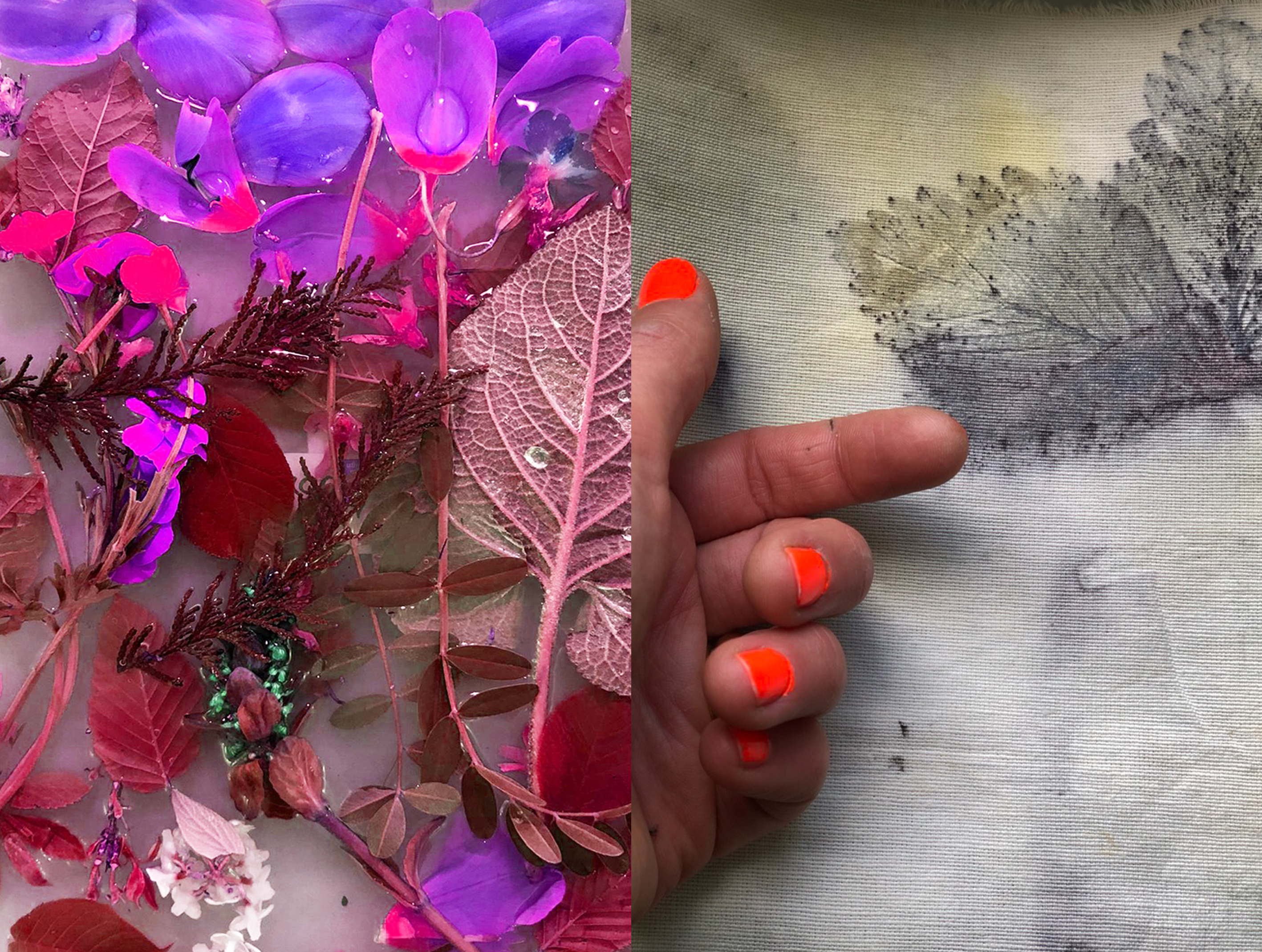 Eco printing is the technique by which plants are printed directly onto fabrics - whereby flower and leaf dyes are extracted and fixed with steam. In this joint venture with Poplin Project, we will communally lay out patterns to create organic compositions in silk and cotton.